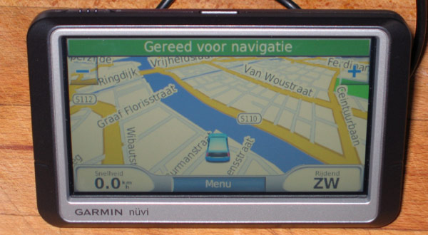 Nog een week tot mijn nieuwe baan begint, ik m'n thesis zo goed als af moet hebben (don't ask), en ik vrolijk met een klein Volkswagen Foxje (tijdens m'n proeftijd) in de file tussen Rotterdam en Amsterdam mag gaan staan. Aangezien ik als de dood ben dat ik mijn huis niet meer kan vinden en ik geen zin heb om dan maar in mijn auto te gaan wonen, leek het me een goed moment een gadget te kopen waarmee ik hopelijk nooit meer verdwaal! Ik heb speciaal gekeken naar hoe lang hij het uit houdt op batterijen, zodat ik hem ook op de fiets mee kan nemen
